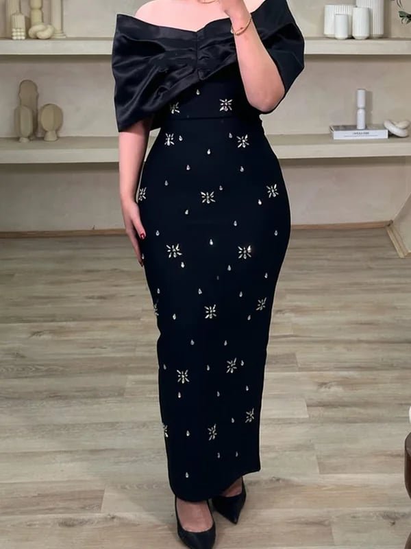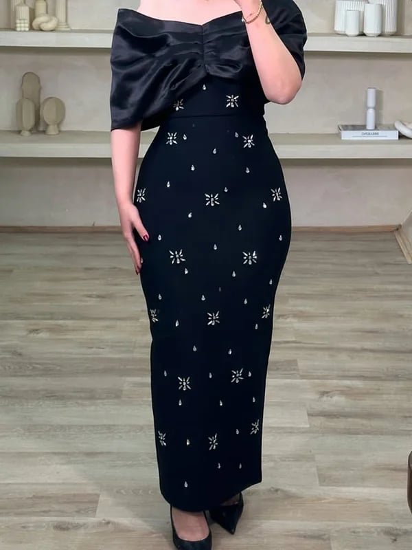 - Silhouette: The dress features a fitted, bodycon or sheath silhouette that gracefully follows the body’s contours. Its length extends to the ankle or floor (Maxi or Ankle-Length), enhancing the figure in a refined, feminine way.
